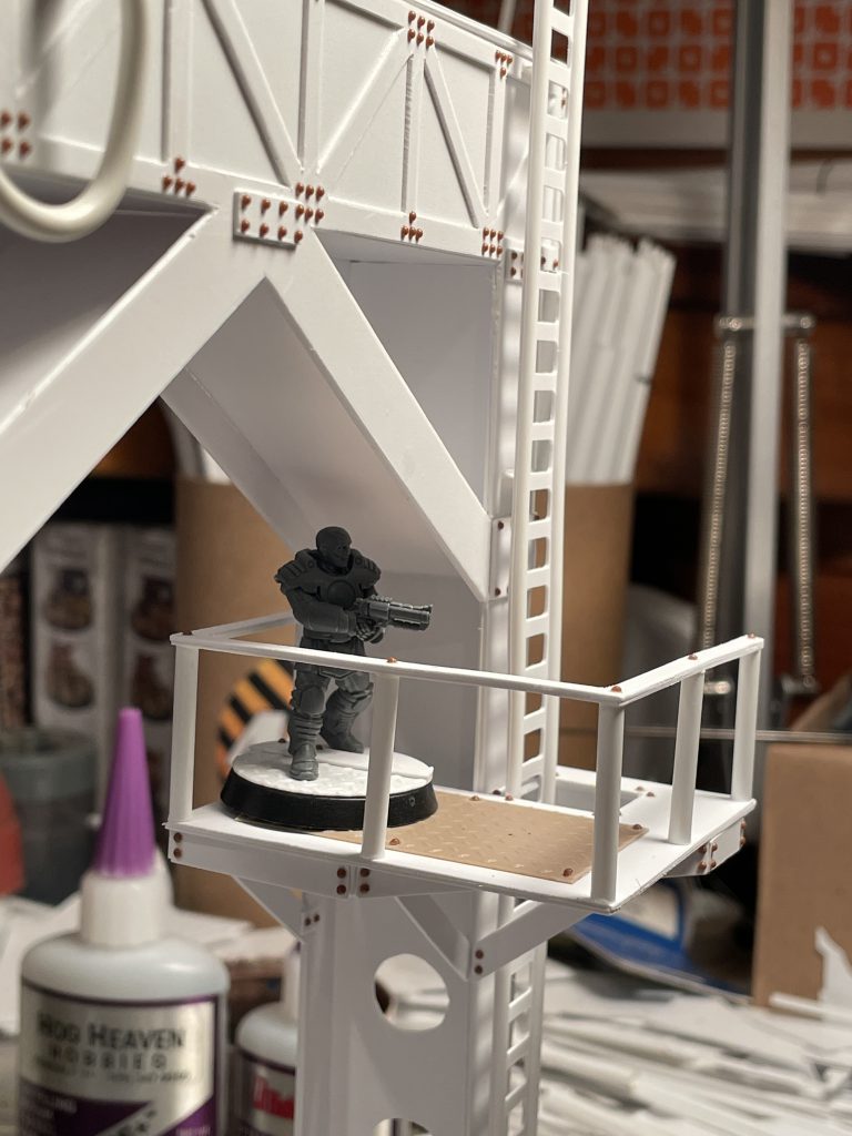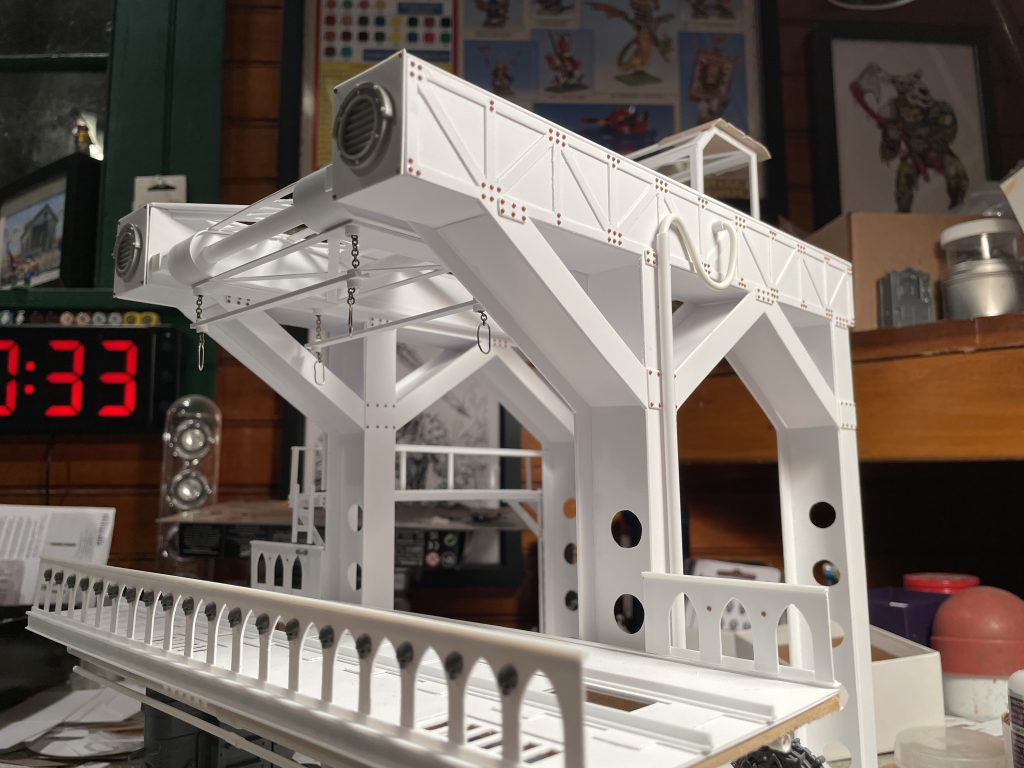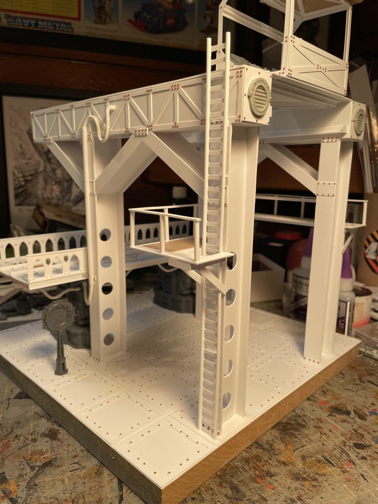 Detailing took place over a couple months, as I kept looking at it and considering how it could play, which lead me to add the second ladder and platform pictured above.
