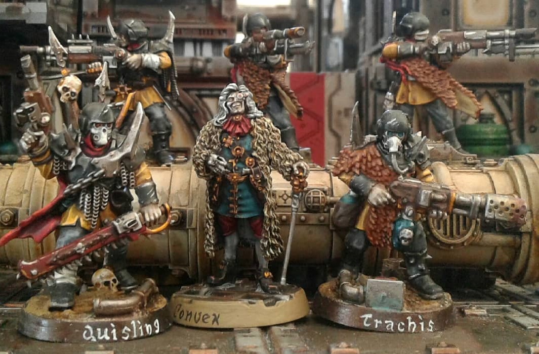 House Greim specialize in providing private security and personal armies to the obscenely rich. Members of House Greim style themselves after military officers, though no child of such a noble house would ever deign to set foot upon a real battlefield. Still, House Greim has excellent tactical minds within their ranks, and these sons and daughters of Greim will sell their abilities to Underhive gangs, if the gang can afford it!