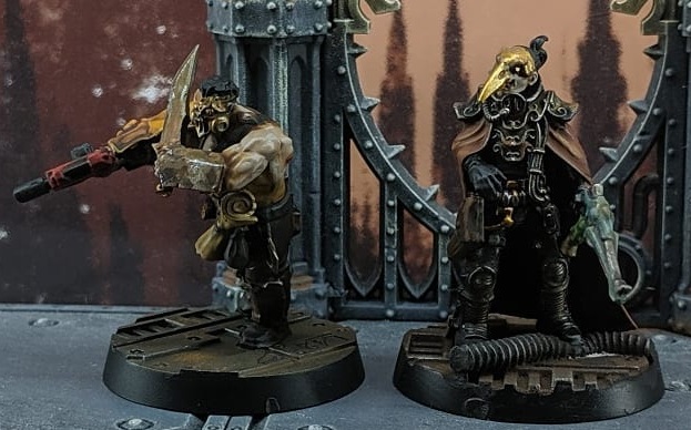 Krieg Mester is a tough nut to crack, clad comfortably in his Light Carapace armor and guarded by his pal thanks to the Bodyguard rule. He’s not a combat beast, swinging and shooting on 4+, but is more than capable of defending himself with his Bolt Pistol and the ever-deadly Power Sword. His role is more as a force multiplier, since his version of