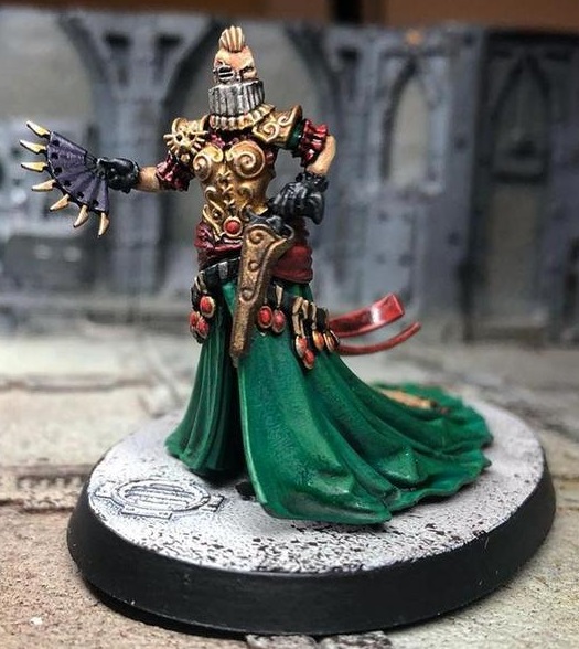 Ulanti Courtier is a formidable opponent, swinging at 3+ with her Power Sword and armed with a Toxin-dripping Needle Pistol as a backup. Opponents will be hard-pressed to pin her down thanks to her Displacer Field, which can negate any hits received on a 4+, in return for sending the Courtier flying a few inches randomly across the battlefield. (Occasionally off of a catwalk or over a pit, but those are the risks we take!)