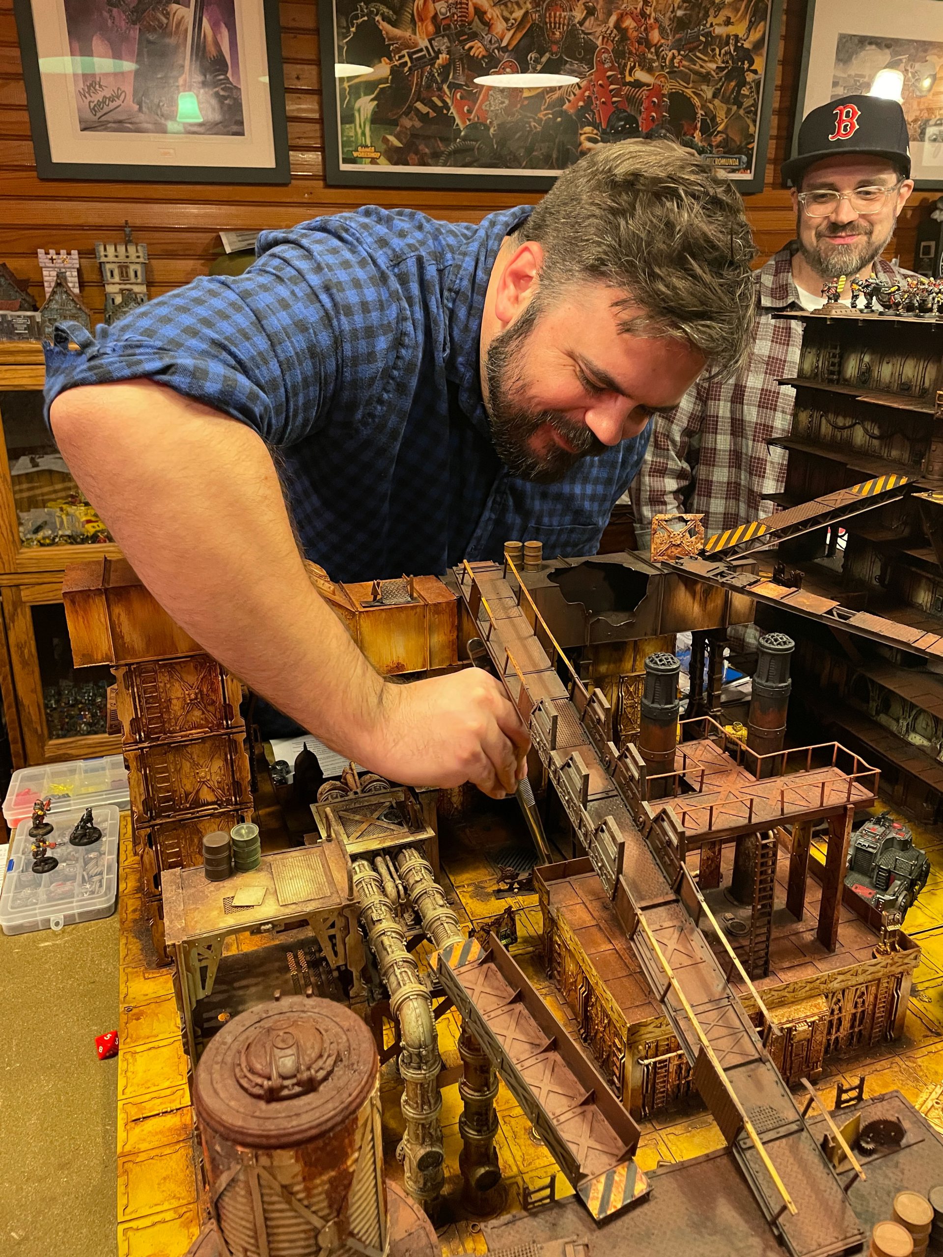 Dan: What an incredible weekend! It had been a long while since I got to play any in-person Necromunda. Since March of 2020, to be specific, and this event was absolutely perfect. Necromunda is 100% a game best enjoyed in person. There were several instances of all of us cheering as some poor dumbass fell off a gantry to their premature demise, which is alway fun. Dylan’s incredible Necromunda terrain is so much dang fun to play on, and I’m a little worried that I’m not going to enjoy playing Necromunda anywhere else!