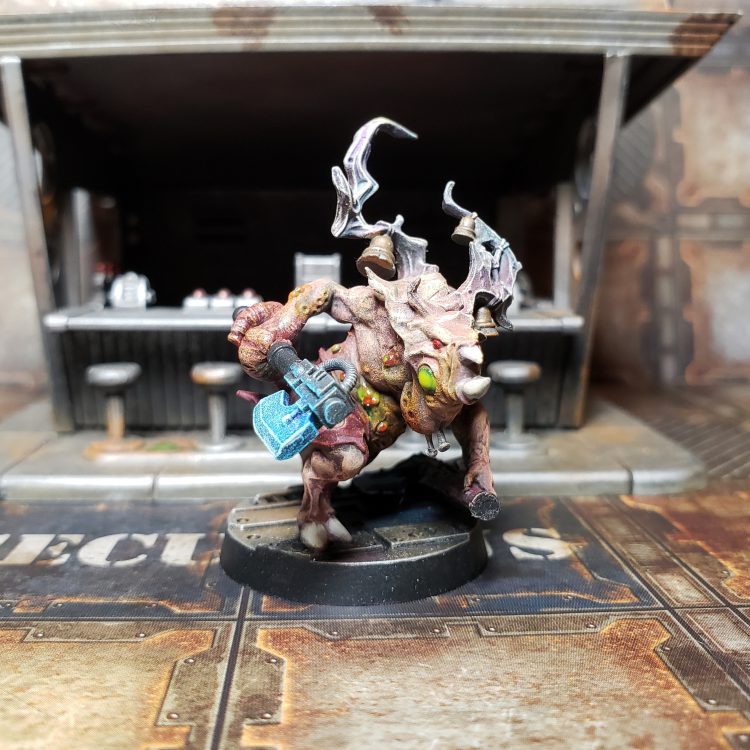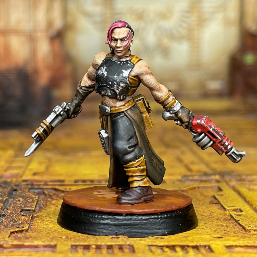 Is a Necromunda model! This gang gives you the freedom to model your boss however you want, and to make the rest of your gang fit the vibes accordingly. Since you are allowed to choose ANY statblock in Necromunda (the game) to be your leader, you can get up to some wild shenanigans! And, they can be equipped with anything from the Trading Post/Black Market that’s Rarity/Illegality 9 or less! How about a Goliath Stimmer with Boning Swords to pack a punch in melee? Or a charismatic Venator Ogryn Boss Gunslinger with dual wielded Rad-Round Autopistols? An Ambot, a Purestrain Genestealer, a Guild of Water Siphoning Delegation, a Cold Trader Shore Party. All are valid and acceptable options! Just make sure to clear it with the arbitrator before you make your Psychically Awakened Ambot Gunslinger!