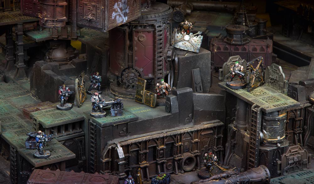 Terrain in Necromunda can be as involved or as simple as you want it to be. Battlefields can be anything from labyrinthine Hive Cities custom-built for the game, to repurposed Warhammer 40k terrain pushed together for a denser feel, to a kitchen table festooned with books and soda cans.