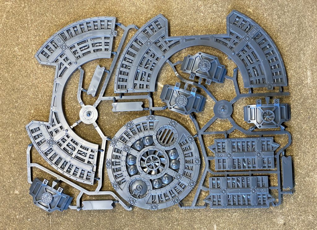 Bulkheads. These come in one or two parts. They're the same height, but the two-part bulkheads have provisions in the base to allow you to stack them on the single-part bulkheads, making them the same height as the Ferratonic Furnace. the detail on these are really nice, with lots of gubbinz that we've seen on other Sector Mechanicus parts over the years. hey'll fit in quite nicely and add some solid cover.