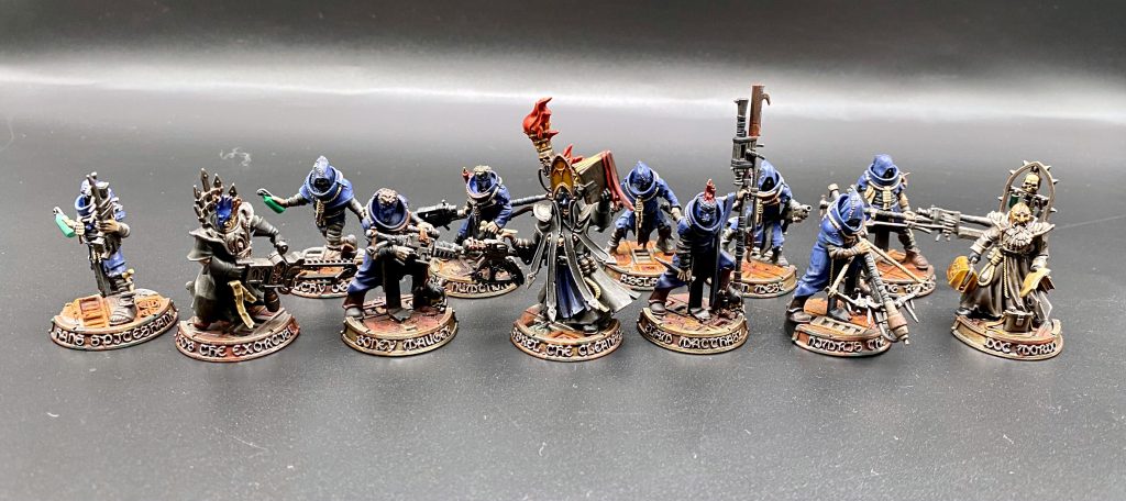 Like anything else I do I wanted a simple paint scheme that would look good at the distance of using it on a table and that I could knock out pretty quickly. Funny enough this ended up only using 1 contrast paint. I also want my Redemptionists to be different from the Cawdor so sort of reversed the schemes on them using more black and less blue.