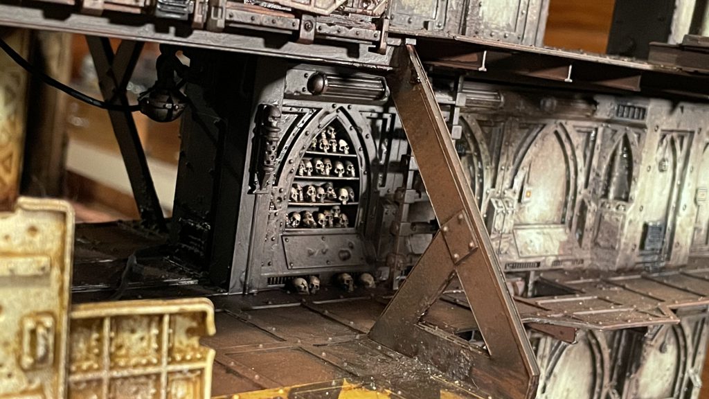 I love the little reliquaries and ossuaries that I've started tucking in. Figuring out how to make my doors function, the old Forge World Zone Mortalis doors that slide up, and the Dark Uprising doors that slide into the walls. I'm especially proud of connecting my ventilation ducts across tiles and how I made them more playable.