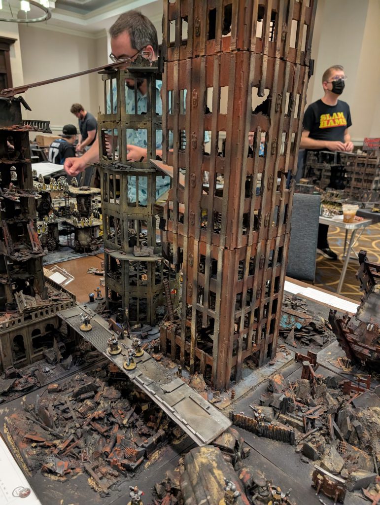 We had a total of nine boards, with a diverse array of Sector Mechanicus, Zone Mortalis, Ash Wastes, and even a sewer tunnel Death Race map. I would like to extend a warm thank you to