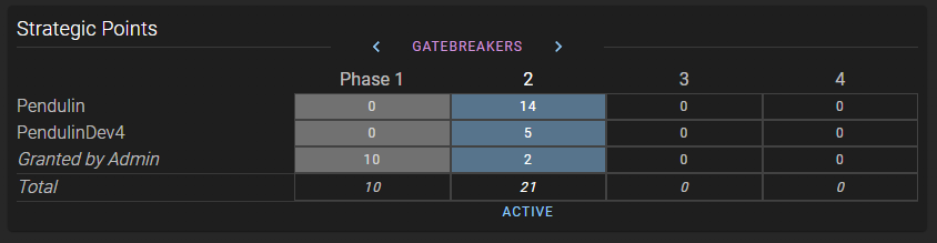 We've also added a feature on the Campaign Dashboard for Armageddon Campaigns as well so you can toggle from the existing view to a new per-Alliance breakdown, which will show you how many Strategic Points each player contributed in each phase.