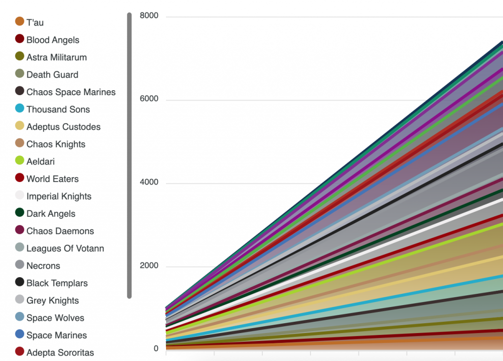 None of this would be possible without a robust feed of data from our various sources - without anything to aggregate, we’d have to resort to just making up stuff and declaring it to be true, which is more of a Reddit thing than a Goonhammer thing. The pipe of anonymized battle data coming in has been a massive help, and is in fact the only way a thing like this could work at all. We’re committed to keeping the data automatically updated, and we’ll be adding new reports and visualizations as we think of new ones that might be useful to readers. The biggest gap now is that we don’t have good data on Gambits yet, but expect some analysis on those when enough games filter in to allow us to draw conclusions.