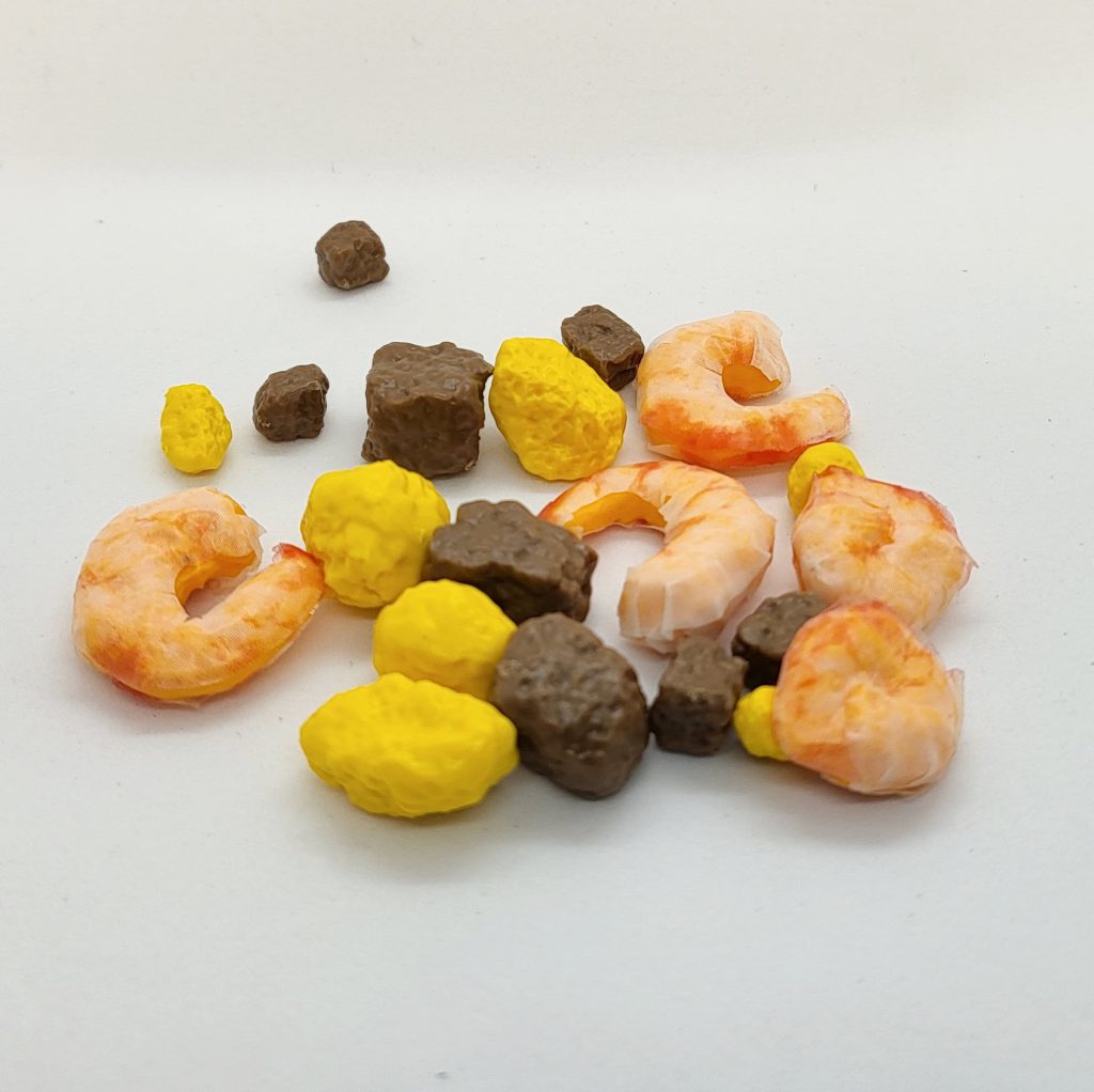 You may notice the fancy details on the shrimps! This is the first place that a BUCK WILD STICKER comes into play. Each shrimp has two stickers to apply, that give them a frankly unsettlingly close resemblance to the real thing. You may notice a few gaps - these stickers are very difficult to seat exactly right and it took quite a bit of finagling (and smoothing out) to get them looking right. I briefly entertained the idea of freehand painting them (please email complaints of cowardice to