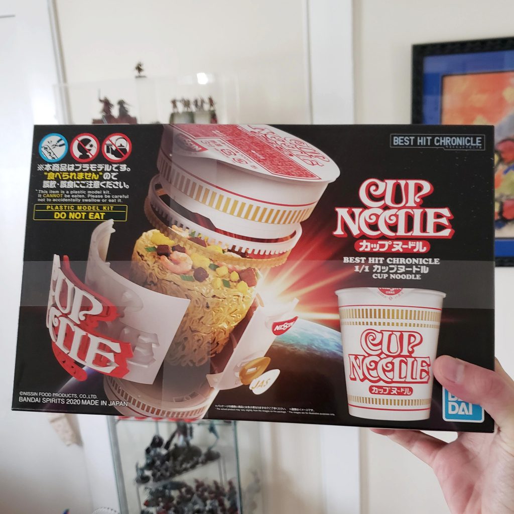 Howdy! We're here with another edition of... something? Listen... a while back I had one too many drinks and ordered myself a present - the Bandai Best Hit Chronicle Cup Noodle 1:1 model kit. This was a surprisingly tricky (but very satisfying) kit to build and it's a delight to have on the shelf.