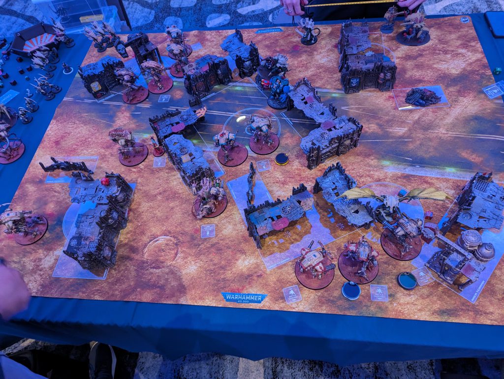 I played a test game in the NOVA 40k GT hall on one of the unused tables. For those who have not attended the lighting was… not ideal (which you’ll see in these photos). This ended up being a blessing in disguise for my review however, since it provided a stress test for what might be the most non-ideal circumstances for these transparent tools to be used in. Additionally, being at NOVA meant that I could compare them directly to the standard plexiglass used by Games Workshop at their US Open series events (GW lent terrain sets to NOVA for this year's event).
