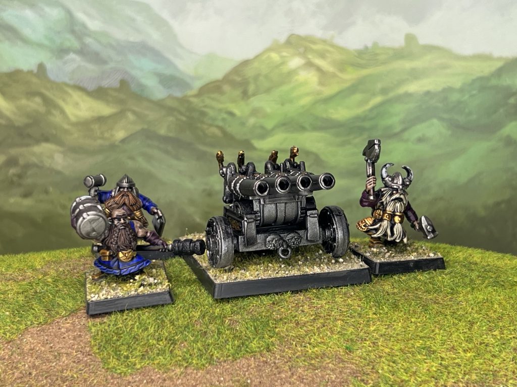 Special choices include unlimited Miners, more Scout Gyrocopters, and the traditional stock Gyrocopter. In addition 0-3 War Machines per 1,000 points may be selected from the Bolt Thrower, Grudge Thrower, or incredibly fun Move and Shoot Cannon. Rare units are Gyrobombers, 0-1 units of Slayers and 0-2 War Machines from Organ Guns and Flame Cannons per 1000. Finally you’ve got Mercenary choices of Imperial Dwarf Mercenaries, 0-2 Doomseekers per 1000 and 0-1 Goblin-Hewer per 1,000.