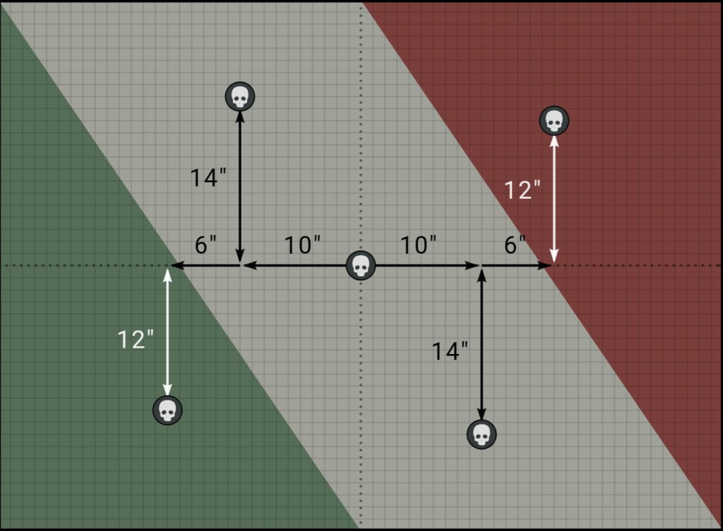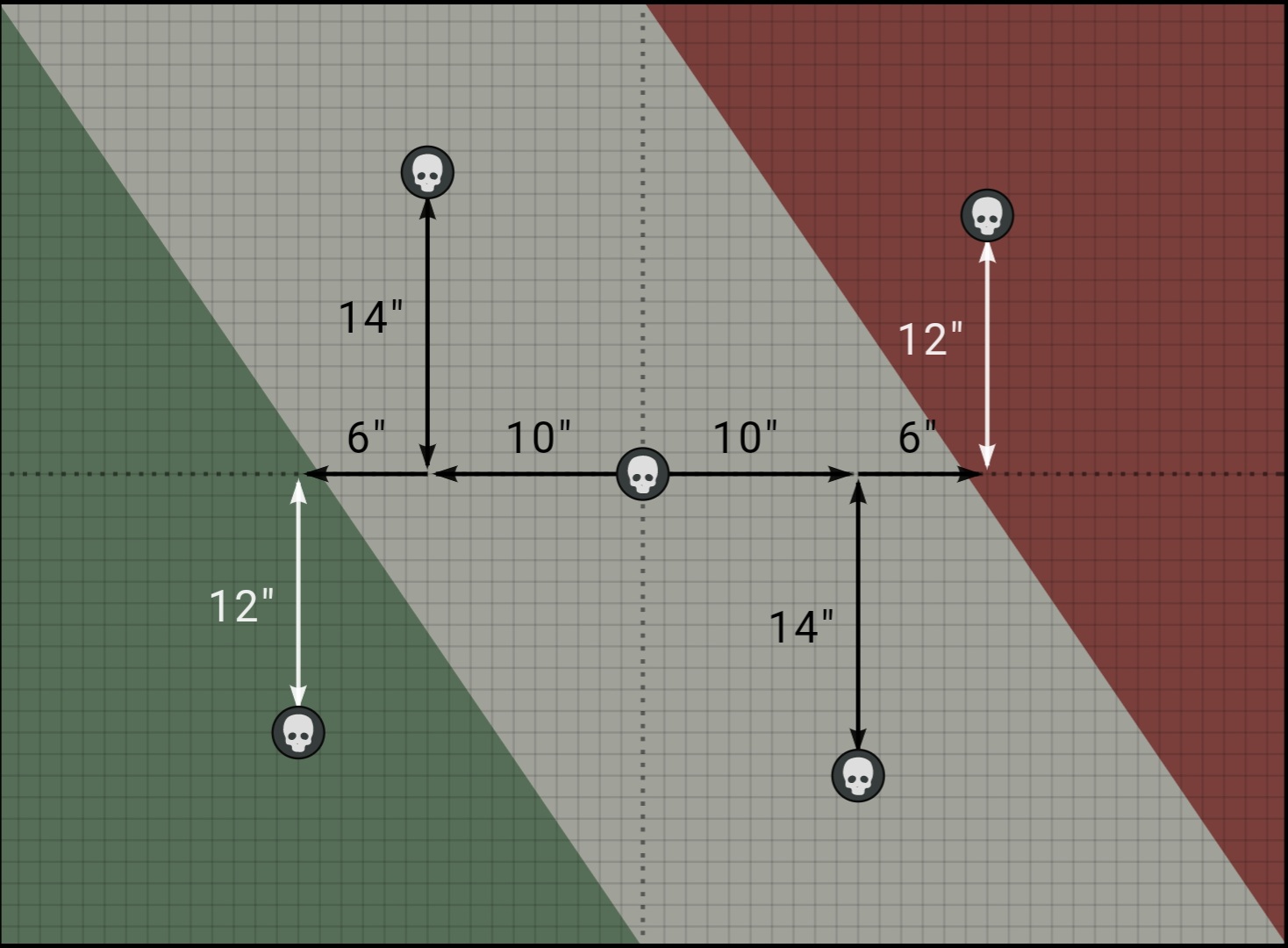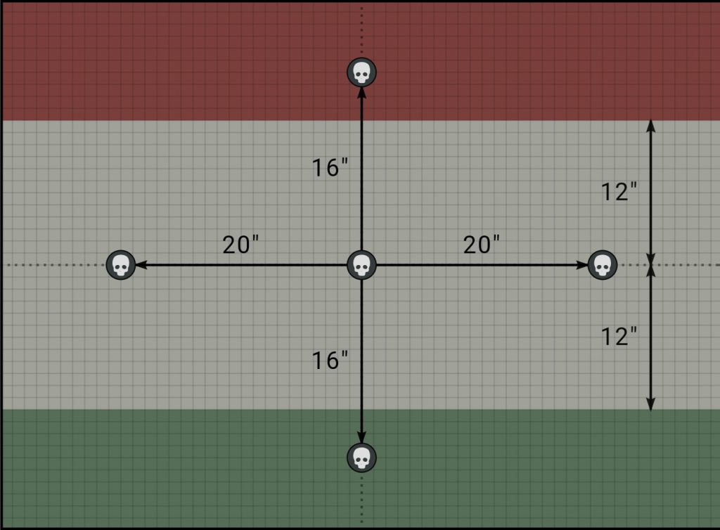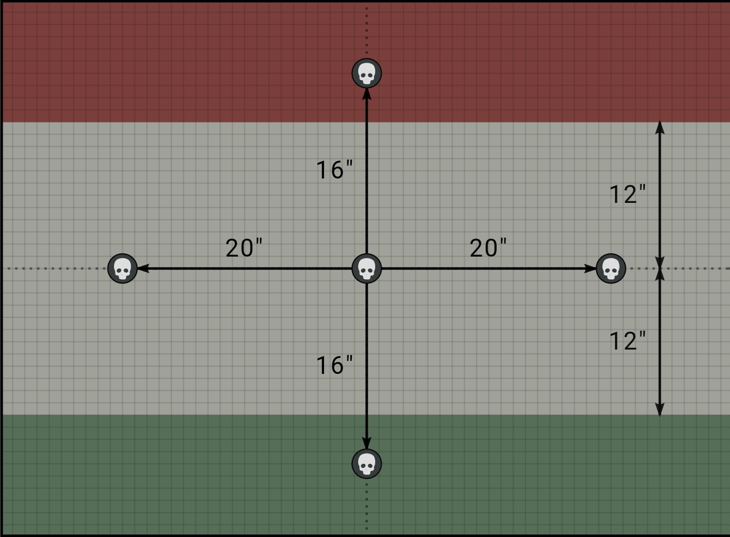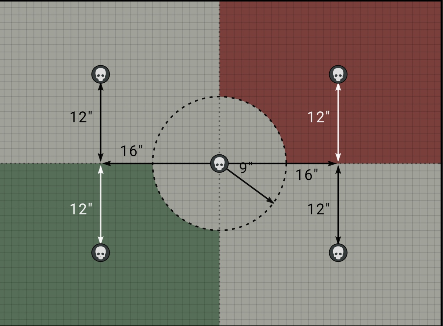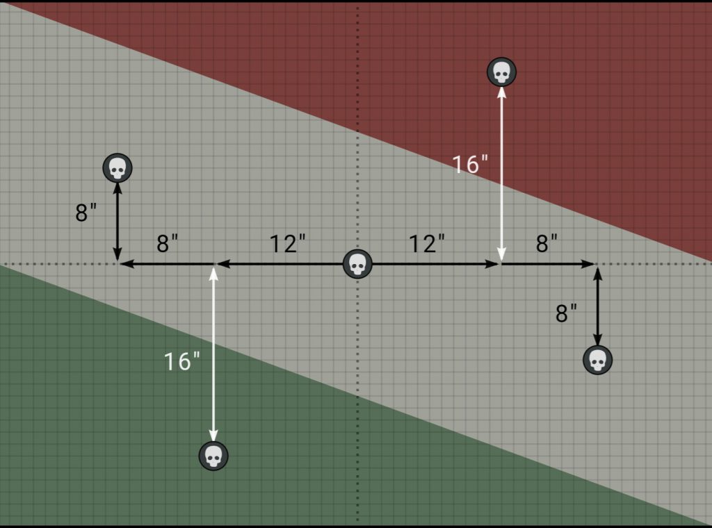 An army that I had absolutely no idea what it did. But hey, Marines are Marines right? I assumed the Aggressors would shoot real good, and the Death Company would smash real good and just kinda went from there. The mission required objectives to be player-placed and having lost the roll, Eric placed favorably. This... is a bold strategy. Like FLG, Goonhammer ruled that the roll off for sides is after the objectives are placed, a deviation from the Levi pack. As a result there was a 50/50 chance that Eric would lose the roll and leave himself at a disadvantage... but he did not. The Objectives were placed so that one sat solidly in each deployment corner, easily defended, one in Eric's midboard on the edge of his zone, and one at the far corner on the edge of his zone. The final objective sat in my midboard on the edge of my zone. Being Take and Hold, the objective placement was a real advantage for him.