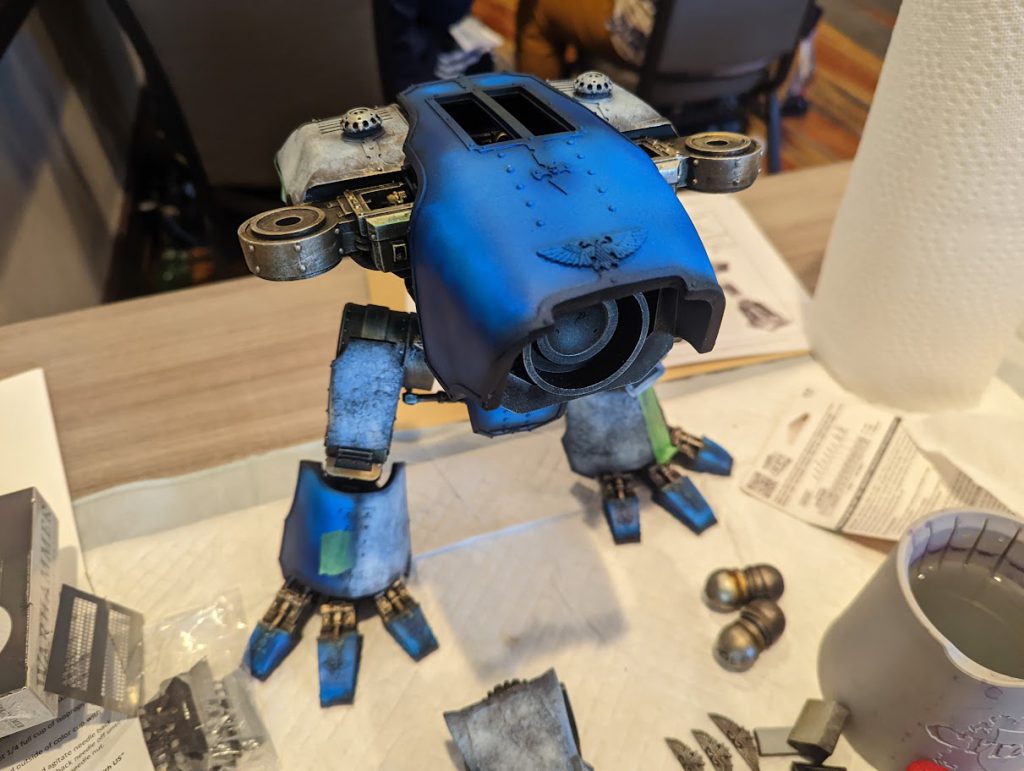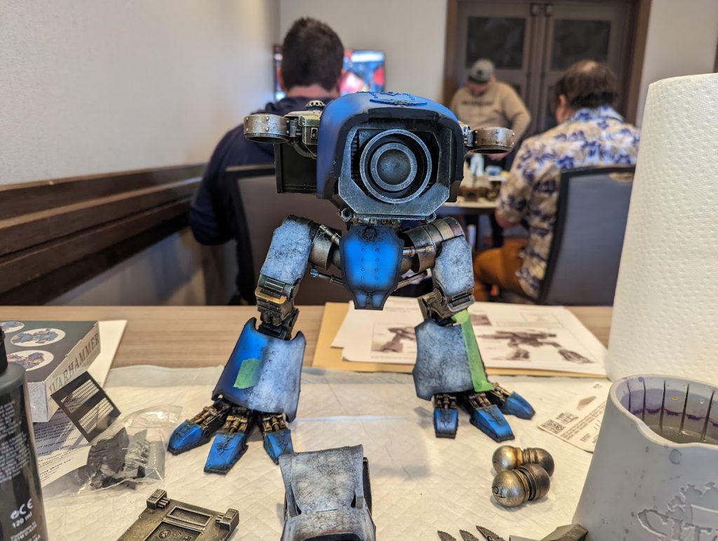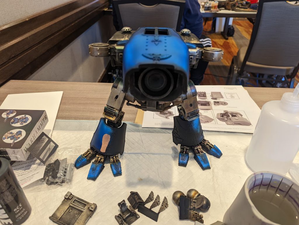 On Saturday, we would be painting the armor panels of the Titan, and the trim of the Titan. Going into the event, I had a fairly clear idea as to what I wanted for my Titan: an Ultramarines Titan that would roughly match my Imperial Knights.