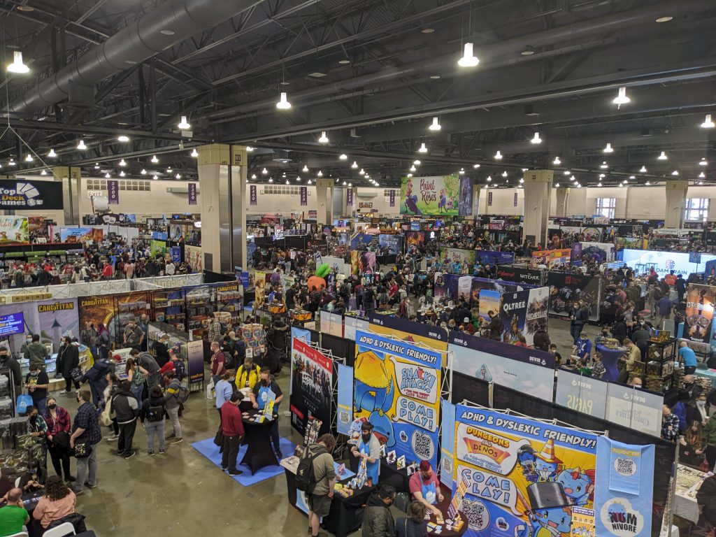 My first Friday pass through the Expo Hall lasts 90 minutes and only covers a third of the Expo Hall before I feel bone-deep exhaustion. Like how I feel after spending a full summer day at the beach. Instead of being buffeted by ocean waves and tenderized by the sun, I burned adrenaline while surfing through the first hundreds of what would be thousands of other people over the course of the weekend. And that’s just inside; there’s also the rest of downtown Philadelphia to connect and collide with outside the venue. PAX Unplugged is the largest crowd I have immersed myself in since before the pandemic. I feel like a feral goblin as I thread up and down the aisles trying to take everything in.