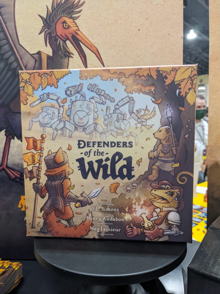 While Out of Order Games was here with their excellent cooperative game Bloc by Bloc: Uprising (a game so nice I raved about it twice), in keeping with PAX’s animal uprising they announced their next release: Defenders of the Wild, a co-design by Bloc by Bloc designer TL Simons and Parks designer Henry Audubon. Set for crowdfunding in 2023, players are animal defenders of their wood from The Machines.