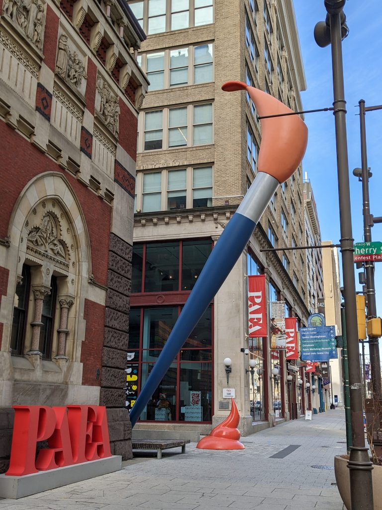 Claes Oldenberg's "Paint Torch"sculpture (2011) outside the entrance to the Philadelphia Academy of Fine Art on North Broad Street.