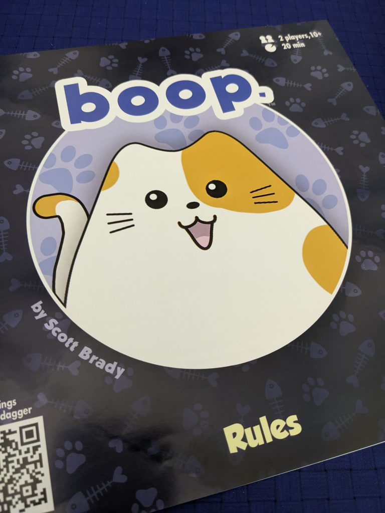 Cat-themed games were a cottage industry this year. (As a cat parent I approve.) Cat in the Box is originally a Japanese trick-taking game that was republished by Bezier Games. In this “quantum trick-taking” game card colors are not determined until played. It’s safe to say that the name Schrödinger has probably never been uttered more times at PAX Unplugged than this year. Another cat game sensation was boop. (yes, the punctuation and the ee cummings lowercase is intentional). It’s a dead-simple abstract where you place kitten and cat meeples over a quilted grid in order to get three in a row. The catch is that every newly placed cat “boops” all adjacent pieces (yours and your opponent’s) one square away from it (including off the board and out of play). File this sweet game under “a minute to learn, a lifetime to master.”