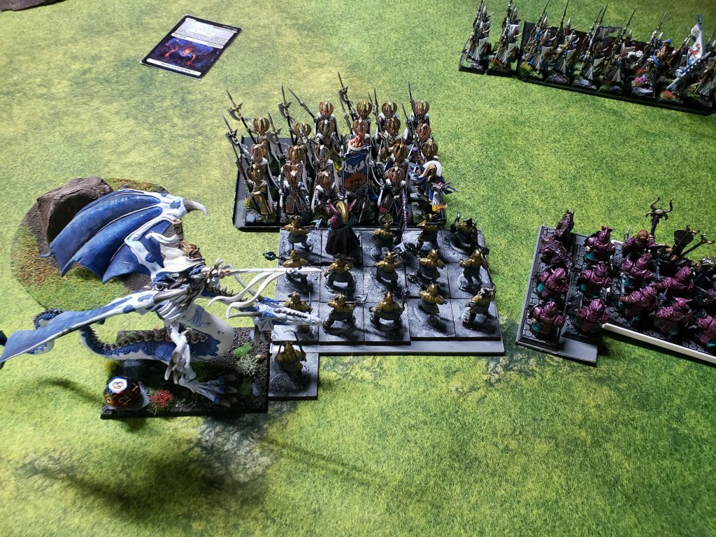 Yeah so fate hates me. Just look at this list! Warriors of Chaos are my current pick for strongest tournament army in the game right now and this is a big pile of their best units, with a Chaos Dragon, 5 Drogres, a level 4 for insurance, and a bunch of wardogs to gum things up and cause me to forget how to play and make horrible unforced mistakes. I have played against Squarehammer before and love playing against him but he clearly thought about his army list a lot more than anyone else there, myself included.