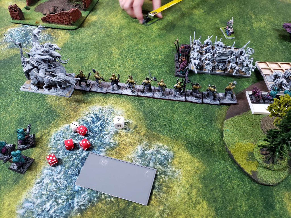 15 Ironsworn! That is 300 points worth of models dead to random chance and I am not going to lie it was the most Warhammer Fantasy thing that I have ever experienced. After that I decided fuck it, we ball, and sent my melee troops forwards at max speed.