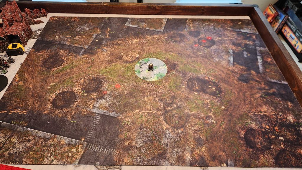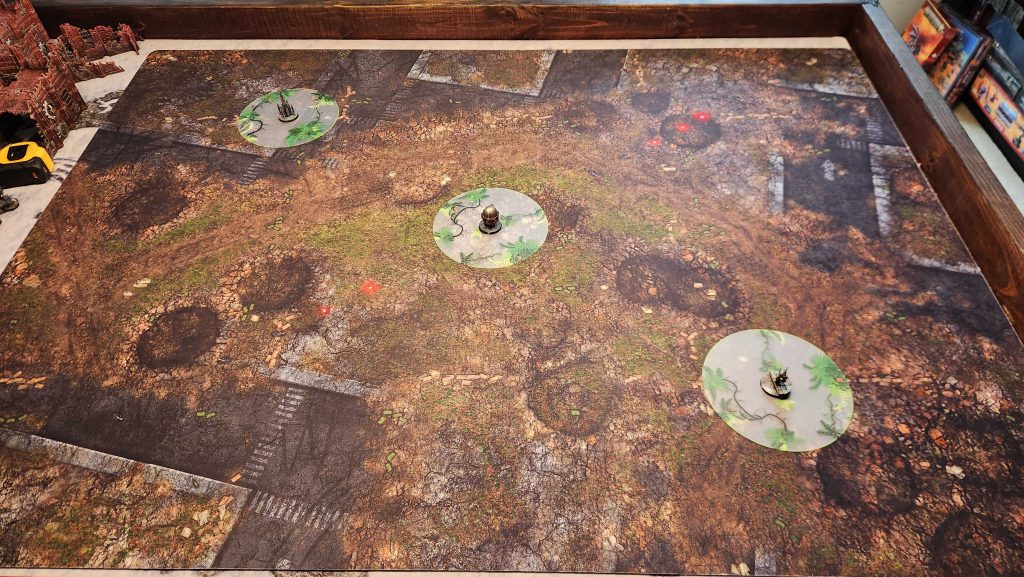 These trees, while visually interesting, are scatter terrain and not woods. They're doing nothing for anyone. This is basically a wide-open table. The ruins also lack bases, but we can house rule around that pre-game if we know what we're doing.