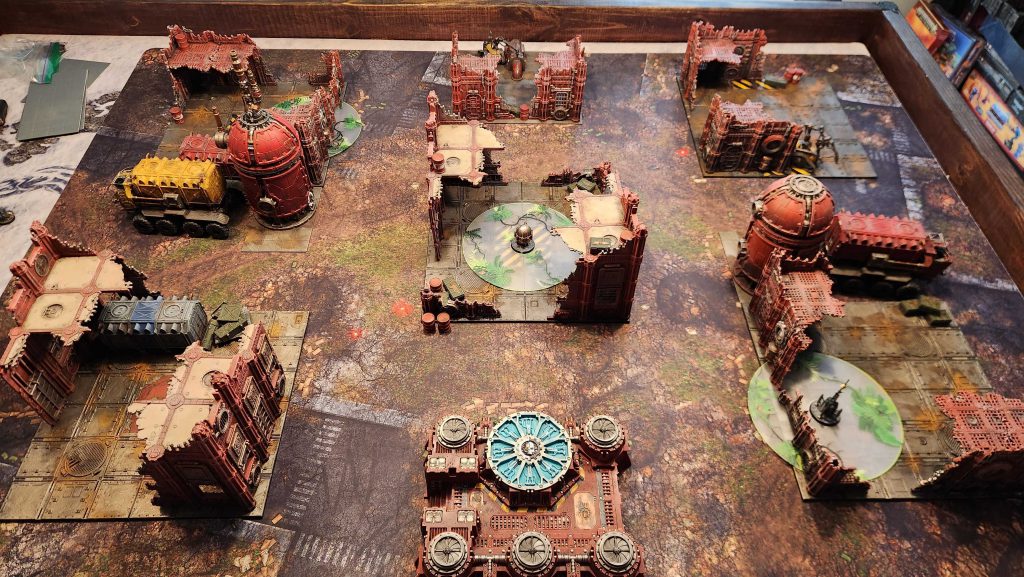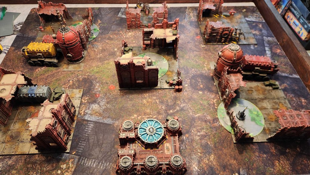 That's solid, and next I'm going to add the "home" ruins for each player, completing our dense downtown of Sector Mechanicus buildings.