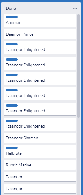 When I first started out with Kanban for miniature painting I made the mistake of making my stories far too small. While I was familiar with using them at work, I wasn’t entirely sure how to approach it at home. It turns out tracking every individual Tzaangor when you’re batch painting them 10 at a time is a path to madness, which is exactly what Tzeentch would want (I actually think he’d prefer 9).