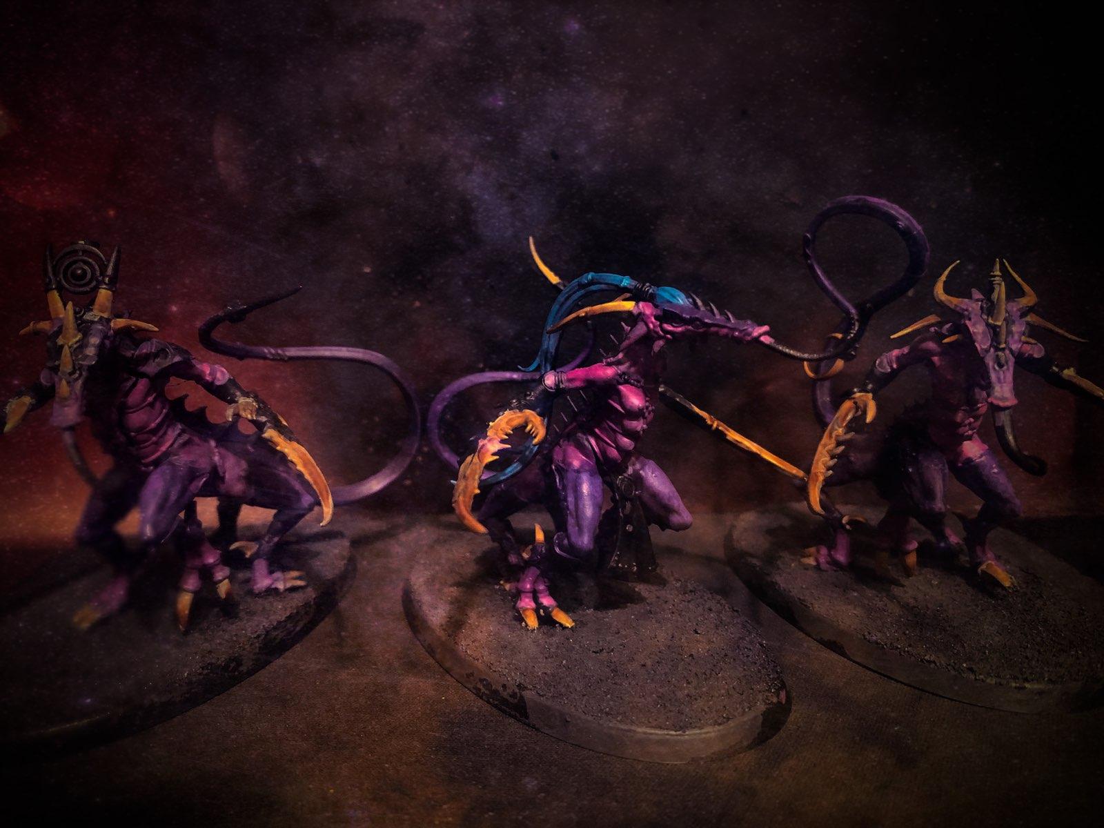 The best of the Greater Daemon options before Engine War, Keepers of Secrets had already seen some competitive play in trios (or, more accurately, in pairs with Shalaxi Helbane), hoping to run them in large enough groups to overload the enemy with threats. They were still a bit too slow and fragile to shift the meta however, unable to FLY over enemy units and with only a 5+ invulnerable save to protect them (plus an Aegis).