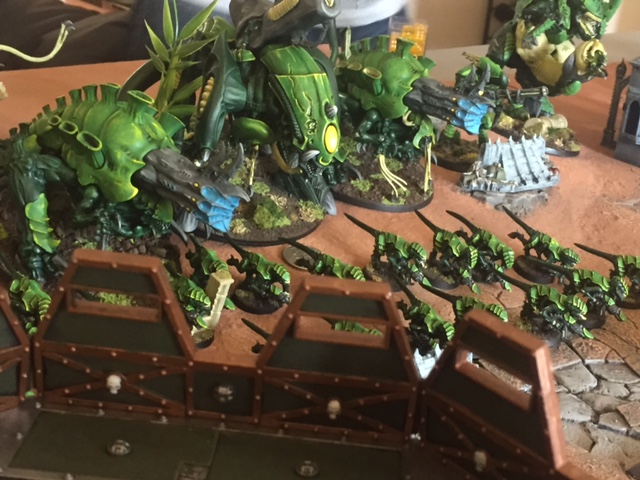 Deadly Predators mechanic, which sees players creating a pool of Infestation units before the battle. These are a collection of Ambulls, Genestealers, Beasts, Lictors, or whatever else you agree to. These show up at random from Infestation markers placed on the battlefield and are hostile to both players, attacking whatever's nearby with all of their ferocity. This is a mechanic that has been brought over from