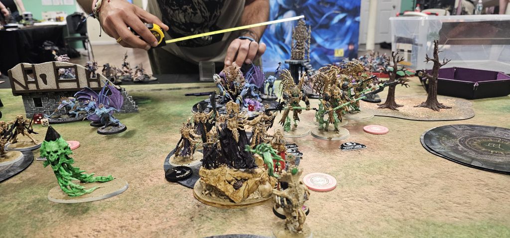 I then rolled off for round 2 and saw the other Morbheg knights waiting in the wings so I decided I have to take the double now. I seized the initiative to push further and pick up more of his stuff. When it was his turn I was blessed with some of the best dice luck I've ever seen, my Archai were surrounded and took swings from Ushoran, Morbheg Knights, Cryptflayers and Varghoulf Courtier and only lost one model. They were able to clap back and pick up Ushoran on the swing back at which point I just dismantled what was left and we called it.