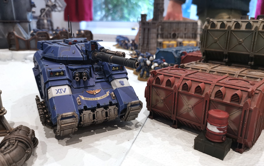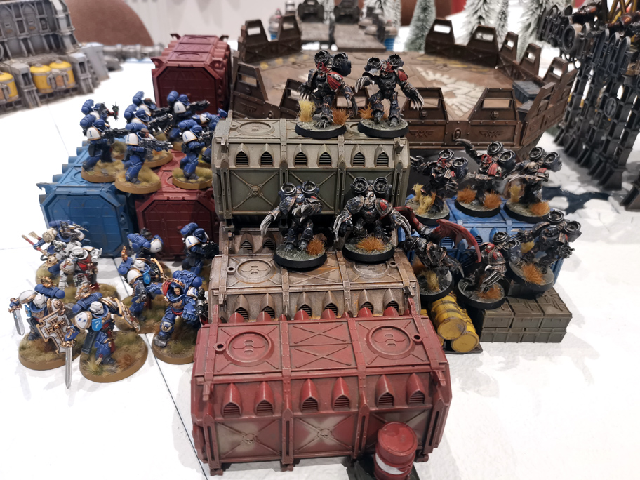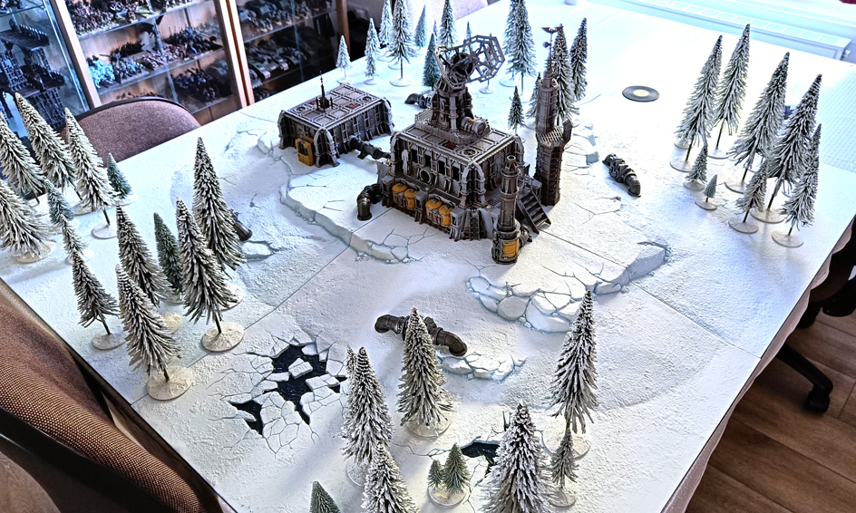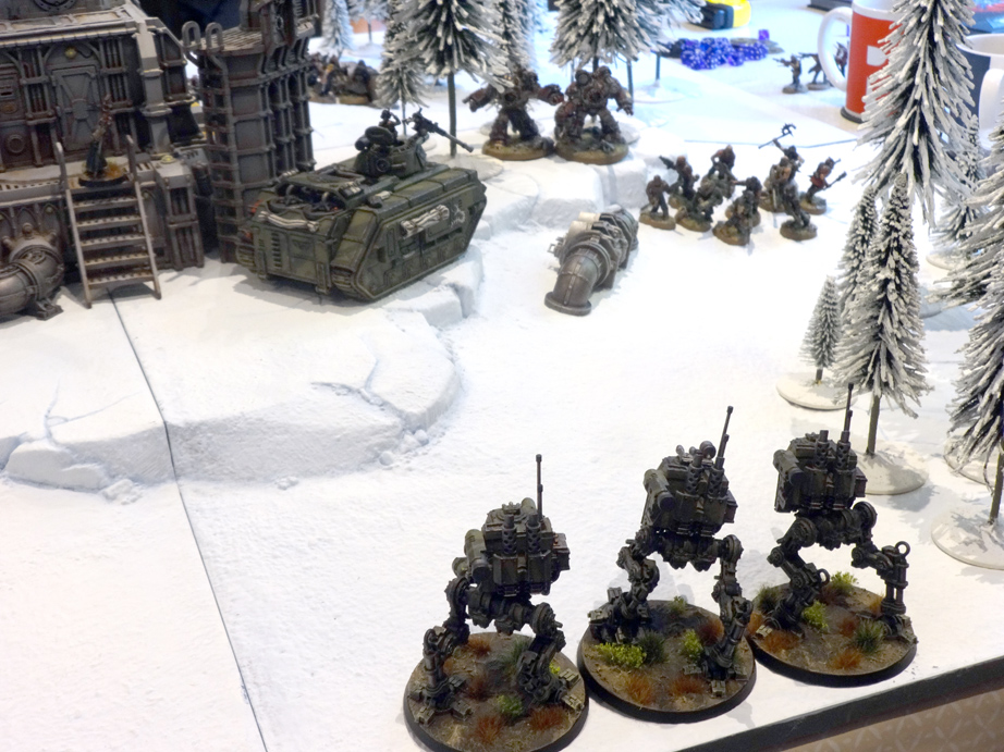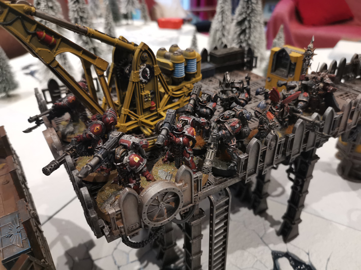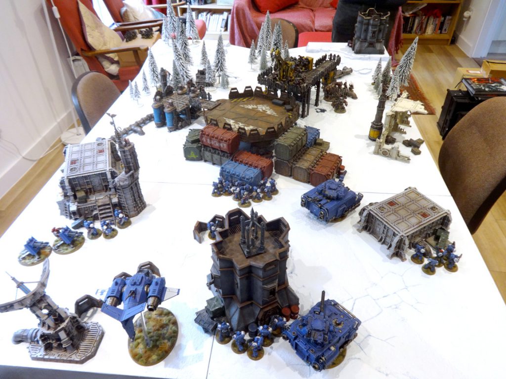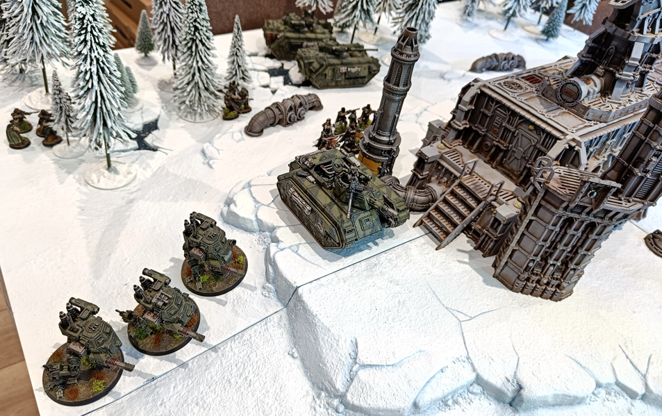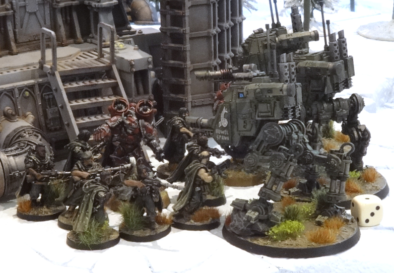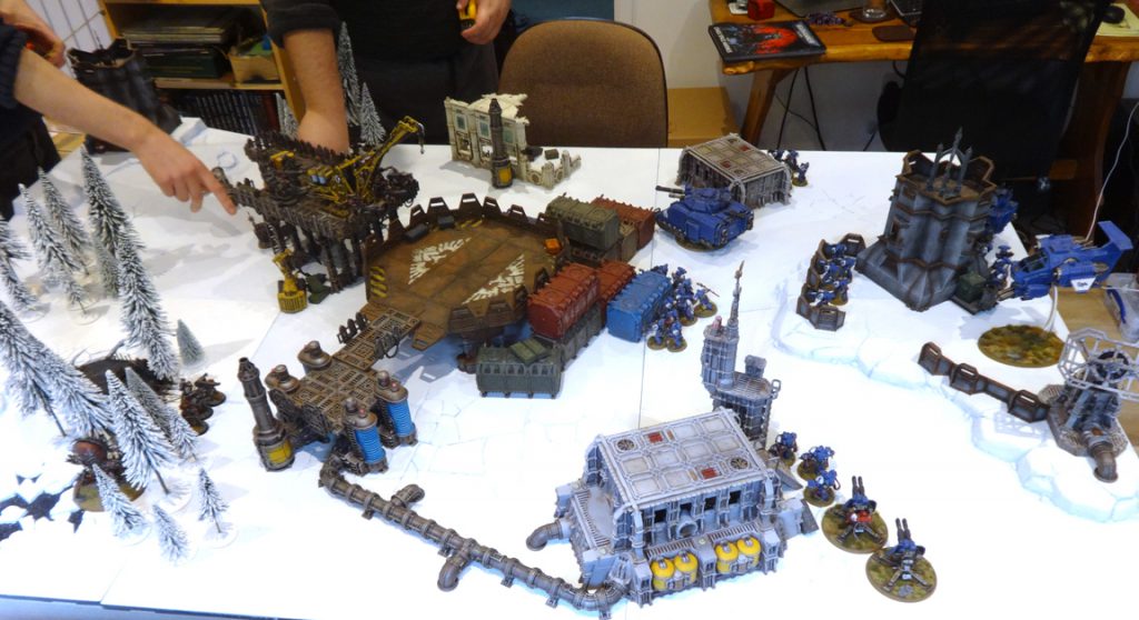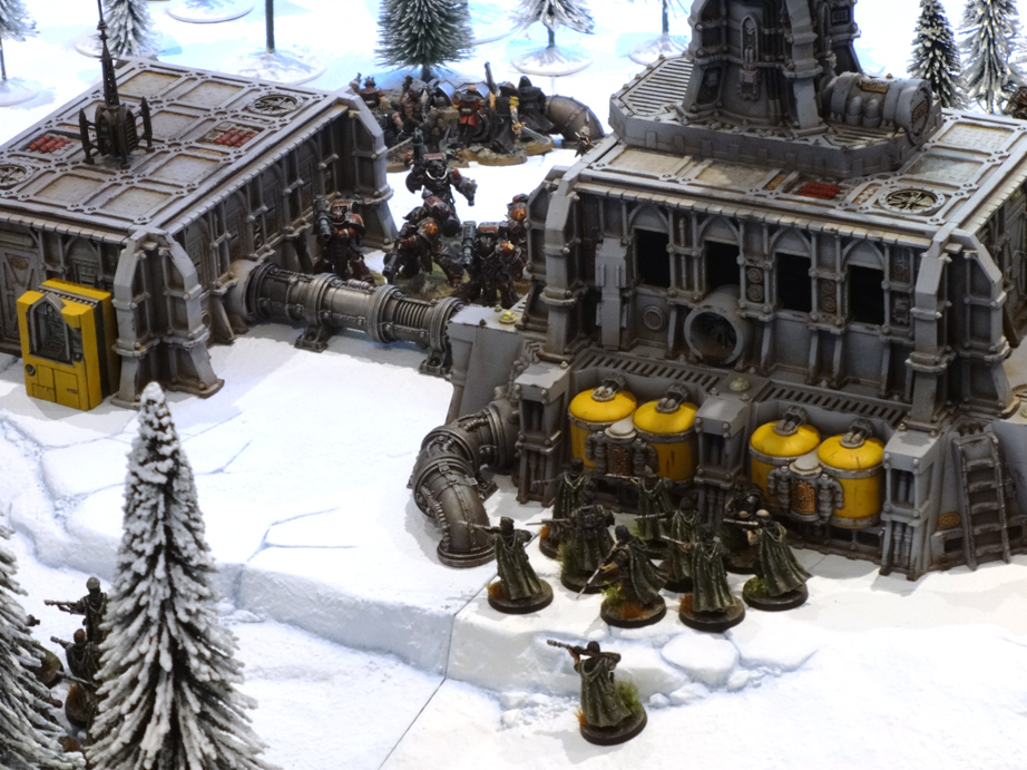 Both the Imperial Guard forces and the Astartes had successfully seen off three previous attempts on the tower, but it’s not exactly a fortress. We set the board up with some bunkers and some semi-broken ancillary industrial amenities showing signs of recent fighting. We imagined Sitalayi itself to be off the table, some way behind this line of defence.