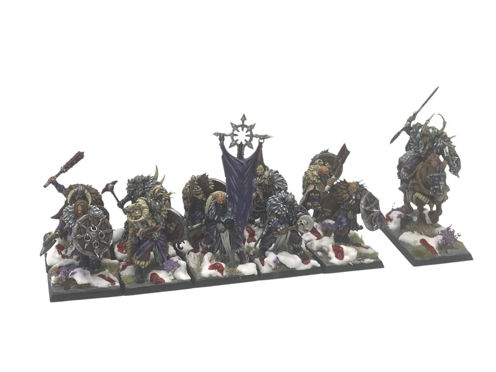 Really likes hairy, smelly barbarian types? Spot of Conan, Frank Frazetta fetish? Can’t blame them. Or maybe the departments just don’t talk to one another?? In any case it seems to be there have been a great many, many chaos worshiping humans released for various Warhammer games in the last ten years or so. All the gangs for Warcry, the Darkoath range and more. None of them however were a direct replacement for the much maligned and really tired plastic marauders kit. Absolutely fitting that the Old World should refresh this range, and they’ve done a really nice job.
