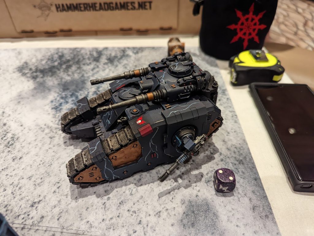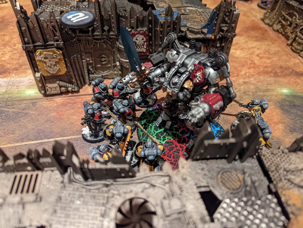 The Wolves of Fenris take down a Grand Master Nemesis Dreadknight! Credit: Kevin Stillman and a charge roll of 11.