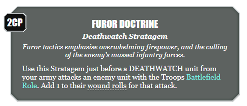 Furor Doctrine, which does the same but against enemy units with the Troops battlefield role. Another handy trick, especially given the large number of anti-infantry guns on the Executioner.