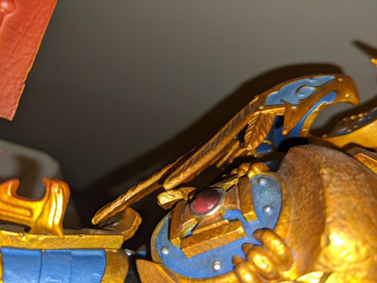 The purity seals also leave something to be desired at this scale and price point. The purity seals do not have written words on them, but instead have squiggly lines. This is something that makes sense for a 3 inch miniature, but is less welcome on an two foot tall statue. Also, while I think they were trying to go for a Gothic-looking aquila, they instead put Batman on the purity seal