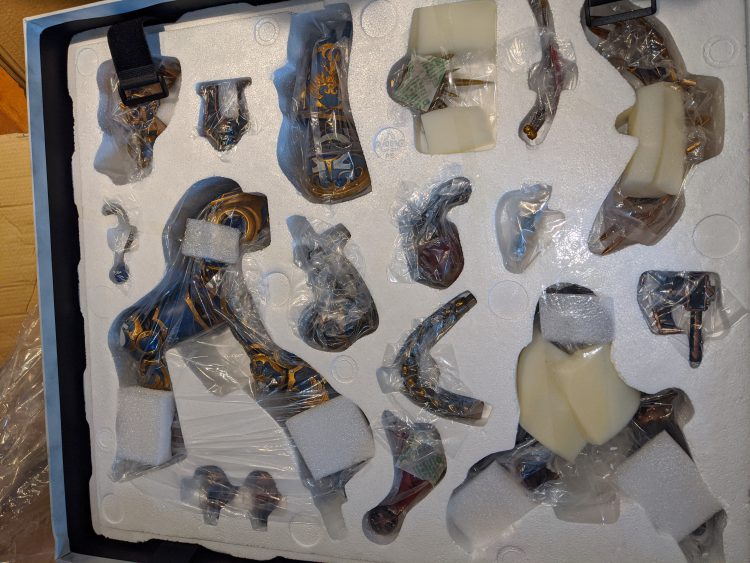 The packaging for this statue, as big and bulky as it was, had kept the model's parts safe as it crossed the Pacific Ocean and the North American continent. It was surprisingly easy to take out all the parts once the shipping package had been removed, and left less of a mess than most large boxes I have owned.