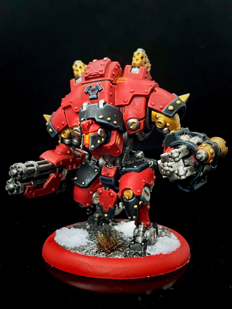 Since there’s no faithful Menites to cling to in MK IV (for now), I decided to start with the not-Russia faction of Warmachine, Khador. It took about a month from when I ordered the box for it to arrive at my home, which is a long time but understandable considering the demand for the boxes. I have since had time to assemble the two jacks that it came with, the Dire Wolf and Great Bear, as well as the Caster Kapitan Ekaterina Baranova. I also was able to paint the Great Bear with one of it’s loadouts, to see how well the model painted up.