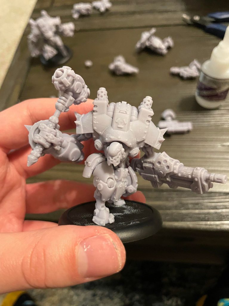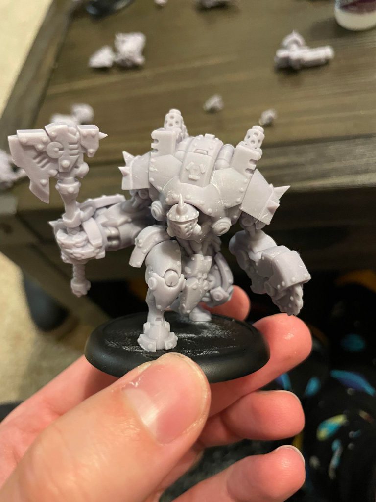 The resin they used for this 3D printed model is also very brittle. So brittle, in fact, that the axe in one of the arms of my Great Bear was broken on arrival. I also caused a bit of the mace to break when I dropped it and it landed wrong on the table I was assembling at. Like most other 3D printed stuff, these models are really brittle, and I would recommend having some greenstuff handy when you assemble these models.