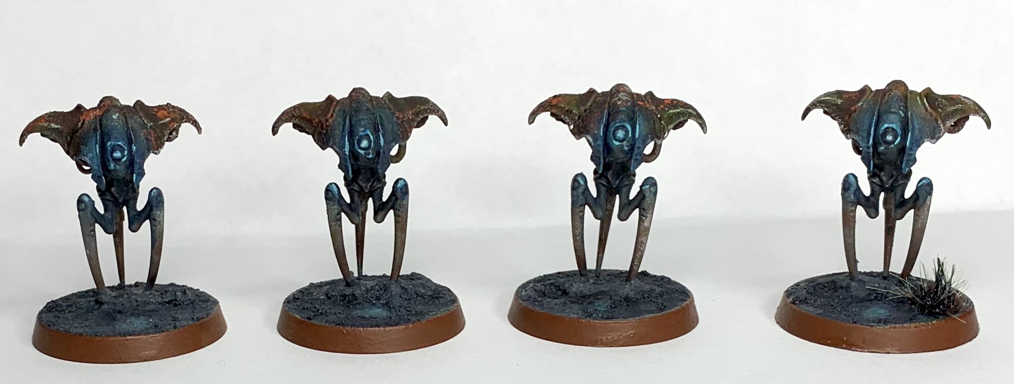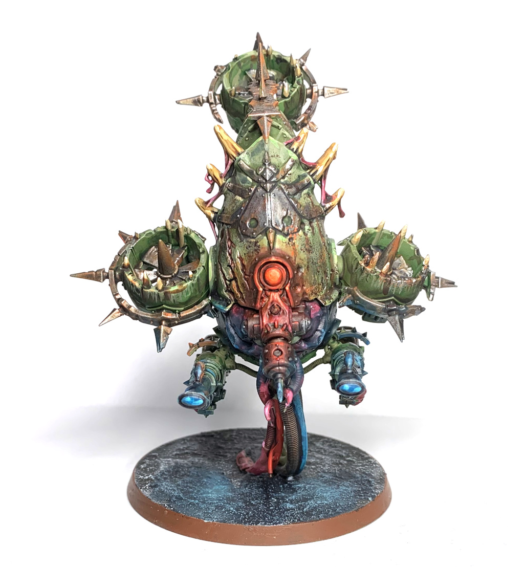 I painted up the Spindle Drones from Blackstone Fortress in a rusty matching scheme to hover around the Bloat Drone.