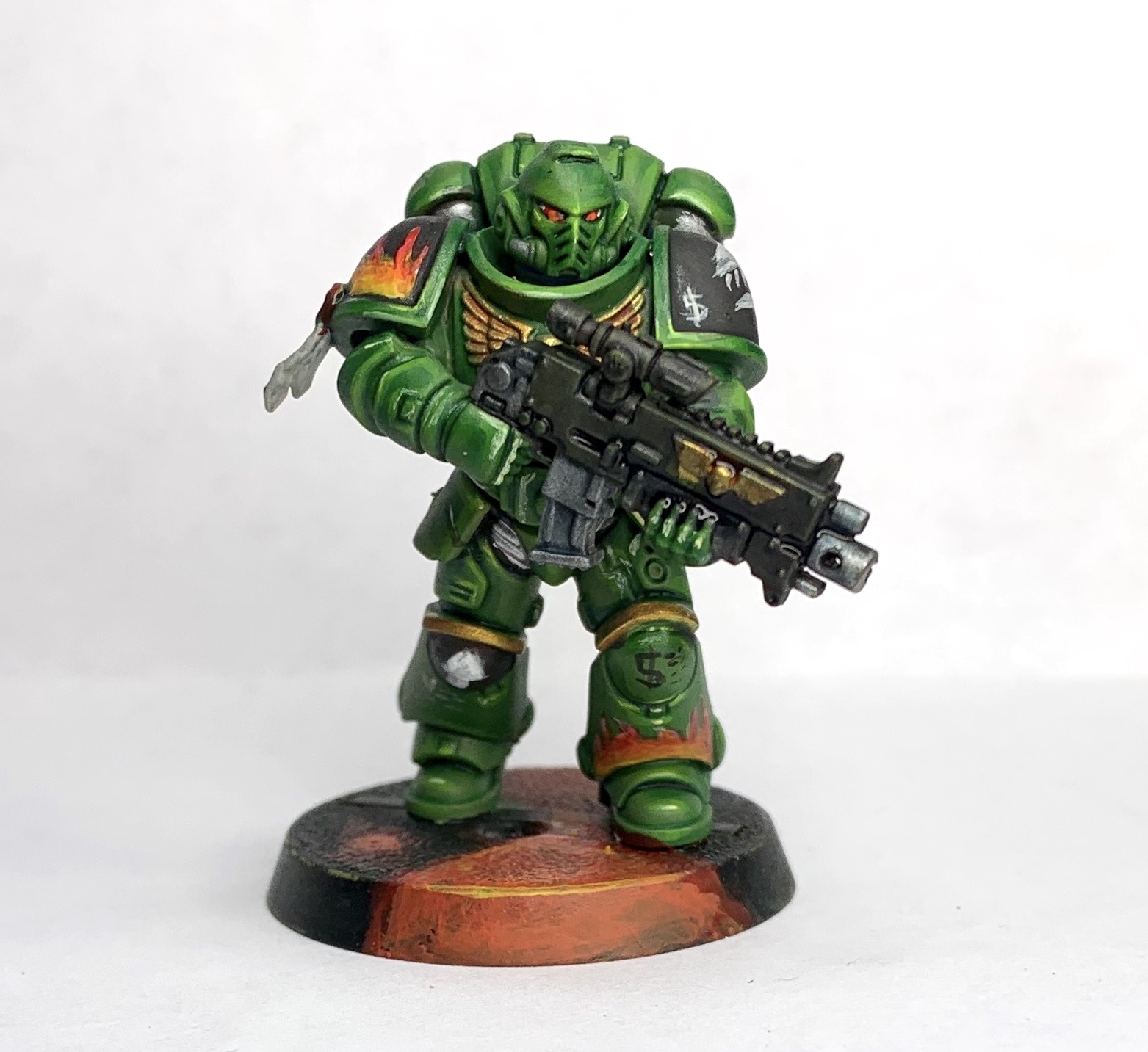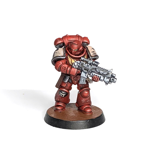 With Contrast(tm) on the horizon, I'd decided to set myself random speed painting challenges by getting people to vote on what Space Marine chapter to paint that evening. First up was a Blood Raven, the 90 minuter.