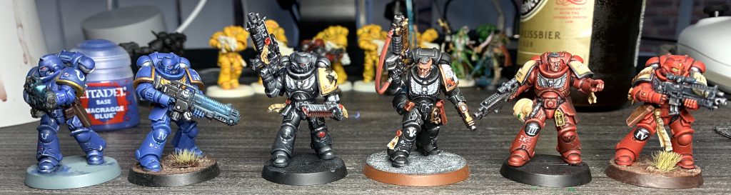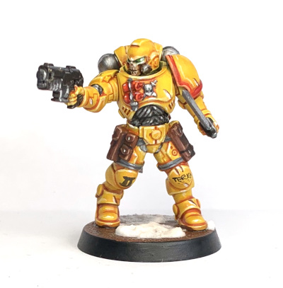 Contrast came out after I painted Greyfax so I immediately decided to brush paint the worst coloured Space Marines (in terms of brush painting anyway), the Imperial Fists, here's a group shot of the Iyanden Yellow boys (with Dorn highlights)
