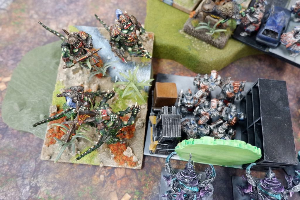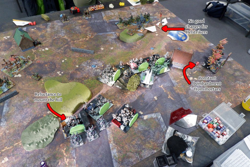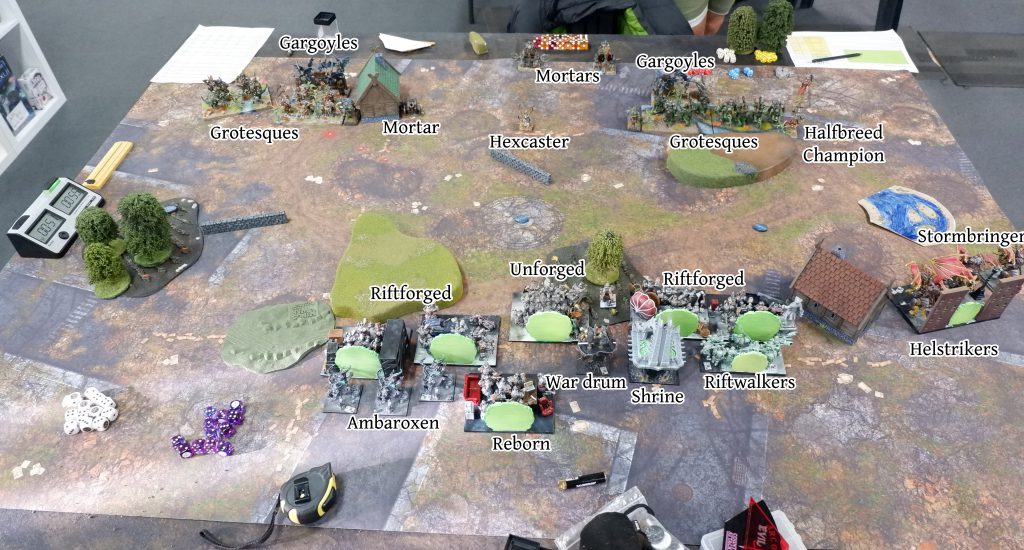 AG’s list has a simplicity like that of a falling wall of bricks. It’s all hard and if it’s facing you there’ll be difficulty avoiding it. There’s four (count ‘em) hordes of Abyssal Grotesques, and the whole list is about delivering these, while keeping the pressure on with a trio of Angkor Heavy Mortars. I knew they would be targeting the Helstrikers, but what would I do about it?
