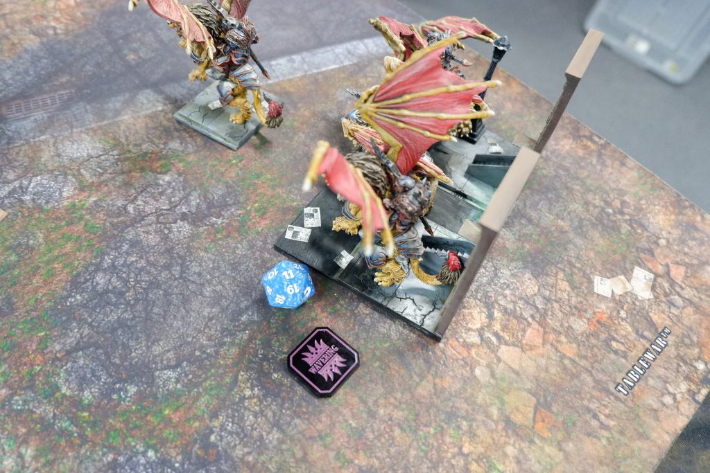 Juggers struggling to hold back the fierce manticore-riding Helstrikers.