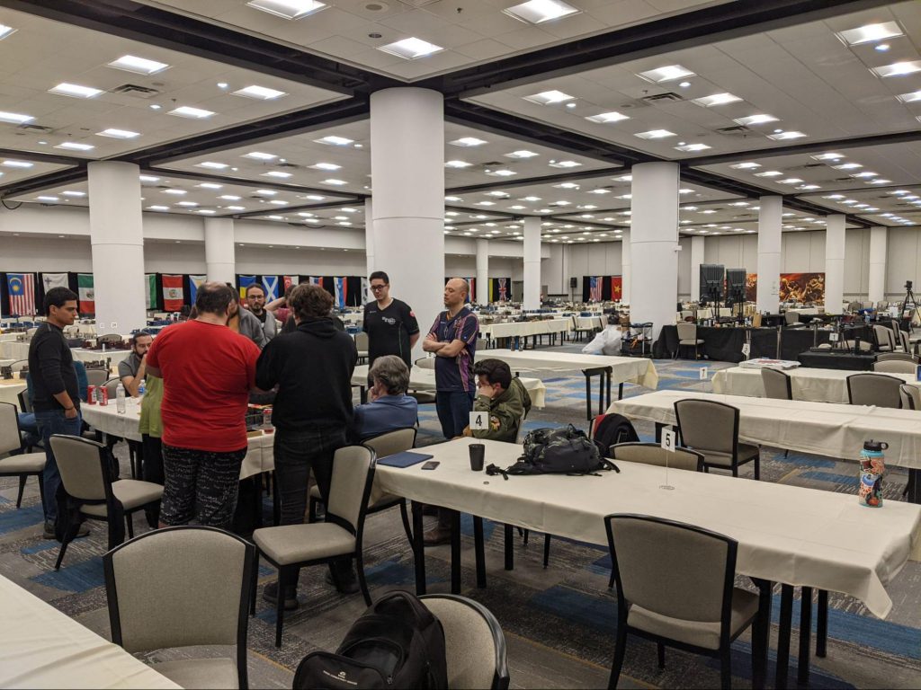 Promises fulfilled, I’m up and at 'em at 7am, on the floor by 7:30 with me and Adrian catching up a bit on pre-game strategies. When he heads off to play Java, Aleksa swings by to chat. We talk about his current success and the overall map designs giving Cults a little more wiggle room than expected. As people filter in, the world bracket lines up to their boards, and I wish Adrian some good luck as Martin and I prep for our games.