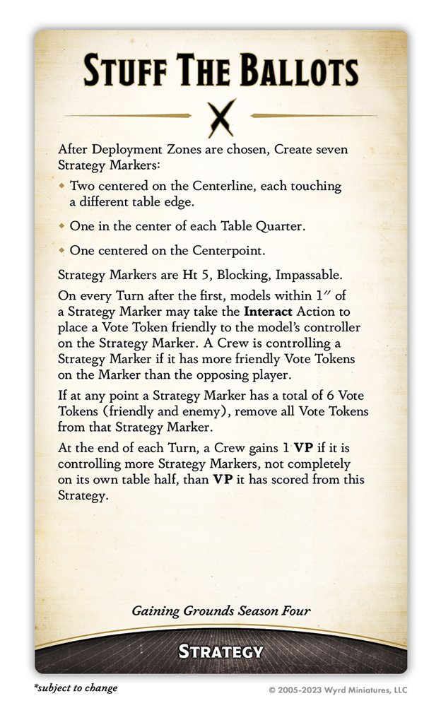 wild. We've never had this many Strategy Markers before, and the "vote" mechanic is completely new. Ballots (I refuse to abbreviate it to "Stuff") really rewards crews that can move fast and Interact multiple times to stack votes. The more you Interact here, the more your