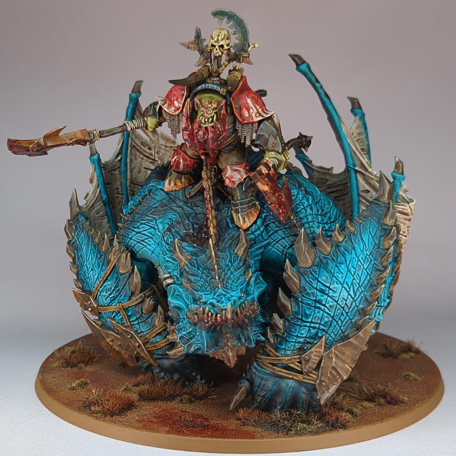 My current painted force also includes two blocks of the new Ardboyz. I’m very torn on these - they’re quite an effective screen, and harder to shift than expected on a 3+ save and 2 wounds each, however they’re also over 200 points per block of 10 which feels very spendy. I’m really pleased with how I’ve painted mine though, with lots of freehand on the shields, and think they add some great visual impact to the army when setting it up for painting votes/nominations (honestly, normally what I’m shooting for at events). It’s hard to imagine a list where those points aren’t more effectively used on units of Brutes and Gruntas though.