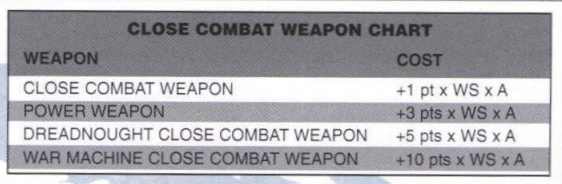 Now if you think being able to cobble together a vehicle for any faction with any armor values and weapons was prone to creating broken shit well, you're probably right. But that said, the rules were pretty brilliant - you started by picking your vehicle type and size, then you chose armor values, and picked your weapons and special rules. Every race's vehicles had pre-set characterstics for things like Ballistic Skill, and in addition to modding your vehicle you could modify the guns, doing things like making a gun long-barreled (+50% range) or gatling, giving it D3 shots per normal shot (so a heavy bolter would go from Heavy 3 to Heavy 3D3 if you made it a gatling heavy bolter). There were point costs for all these, and they varied based on the gun and your vehicle stats - for example, long-barreled guns were 50% more expensive, or 100% if the original range was 24" or less. Close combat weapons' cost depended on your attacks and weapon skill. Yeah, there were likely some abusable things here, but there was a legitimate effort to balance things and make something that could be workable. Also the rules specified that you absolutely