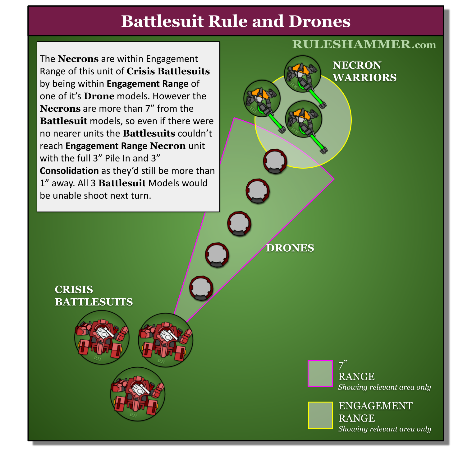 Battlesuits have even more to be worried about however due to how their drones can cause the unit to end up within Engagement Range but not any Battlesuit models themselves.