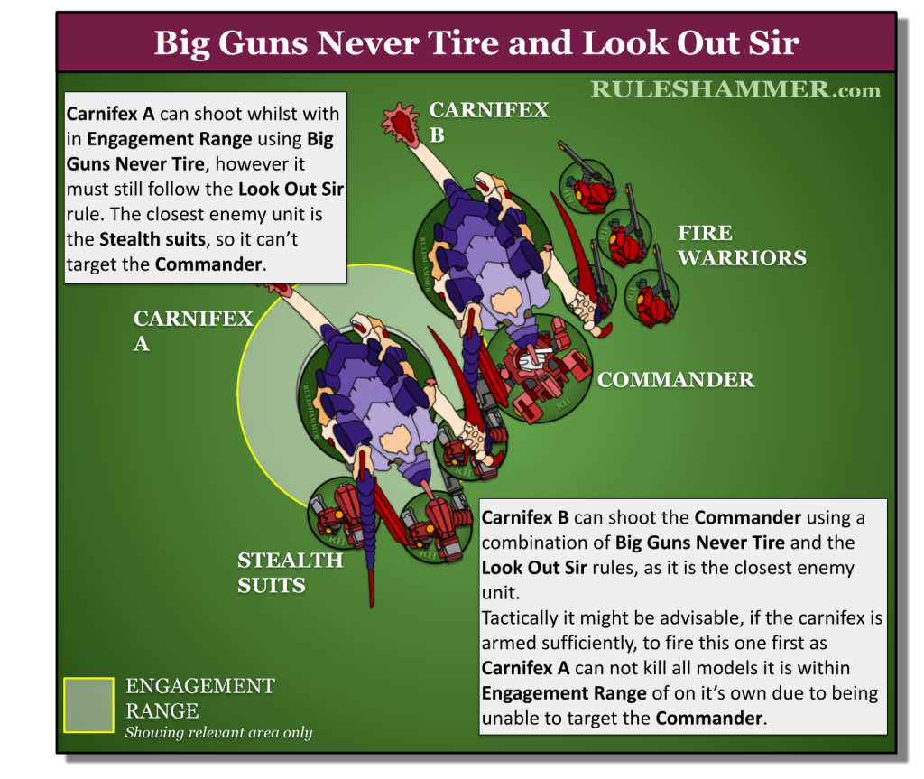 Look Out, Sir still works even within Engagement Range so there will be times when a model can't target a character because it's closer to another enemy unit.